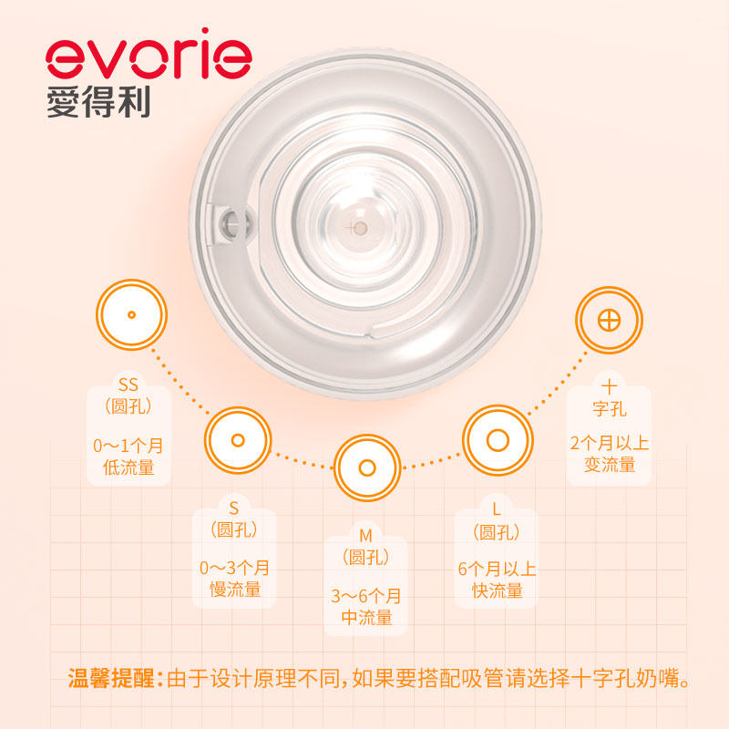 Small round hole S code (suitable for 0-3 months)M cross hole (suitable for 3-6 months)Large round hole L code (suitable for 6 months)Cross hole (2-48 months common)