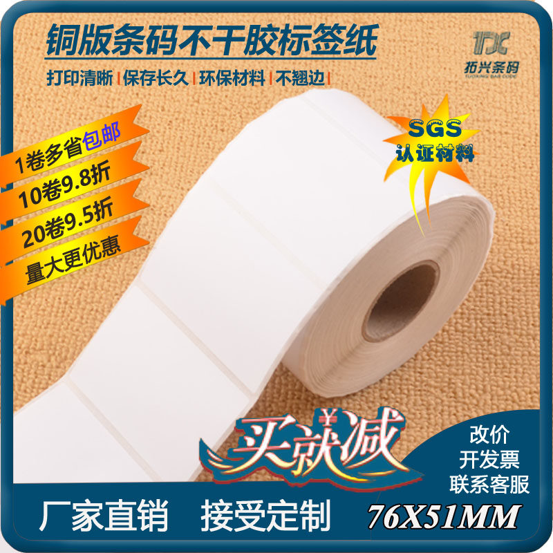 Spot] copper plate self-adhesive label paper barcode sticker price paper 76MM*51MM*1000 sheets*single row