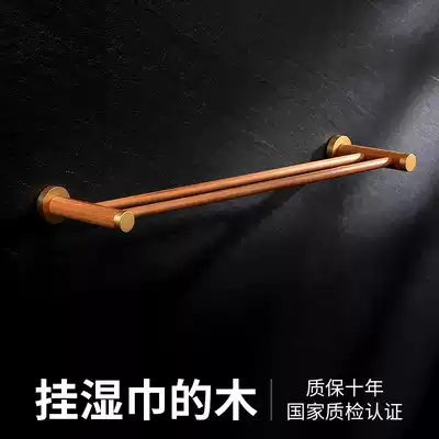Double pole storage rack new Chinese bathroom hardware pendant towel bar wall hanging solid wood towel rack Japanese creative waterproof