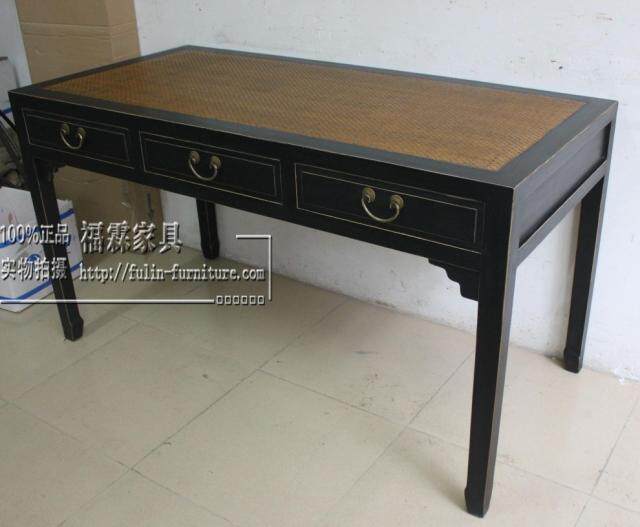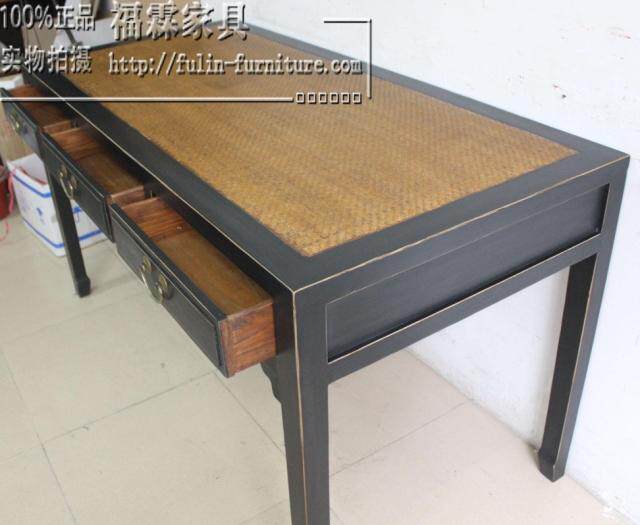 Neoclassical solid wood mat surface black lacquer matte three-drawing desk retro old desk antique furniture flower case calligraphy table