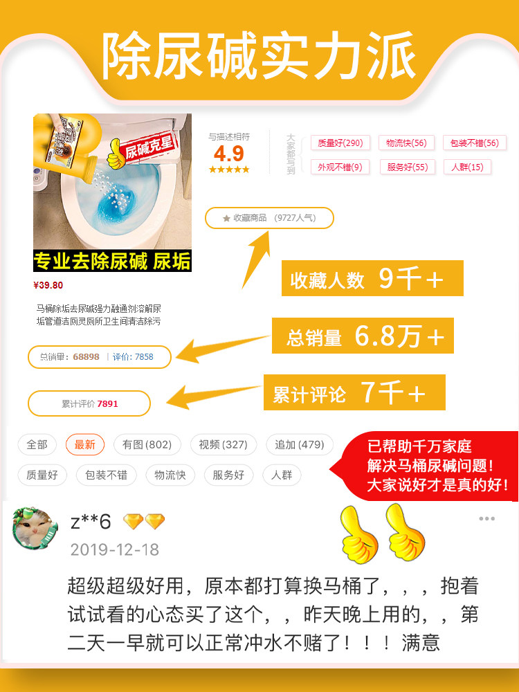 Uric acid melting agent Strong toilet uric scale dissolving agent dredge descaling In addition to heavy uric scale Yellow scale removal to the toilet