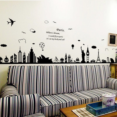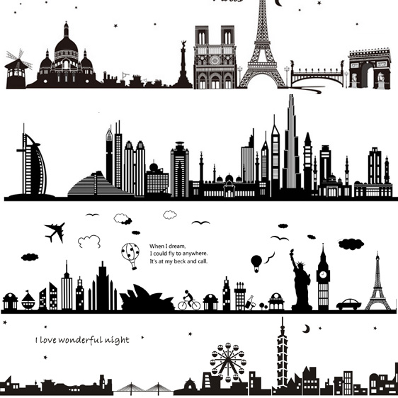 (Day special price) skirting board stickers World Architectural Wall stickers European and American modern simple City silhouette stickers