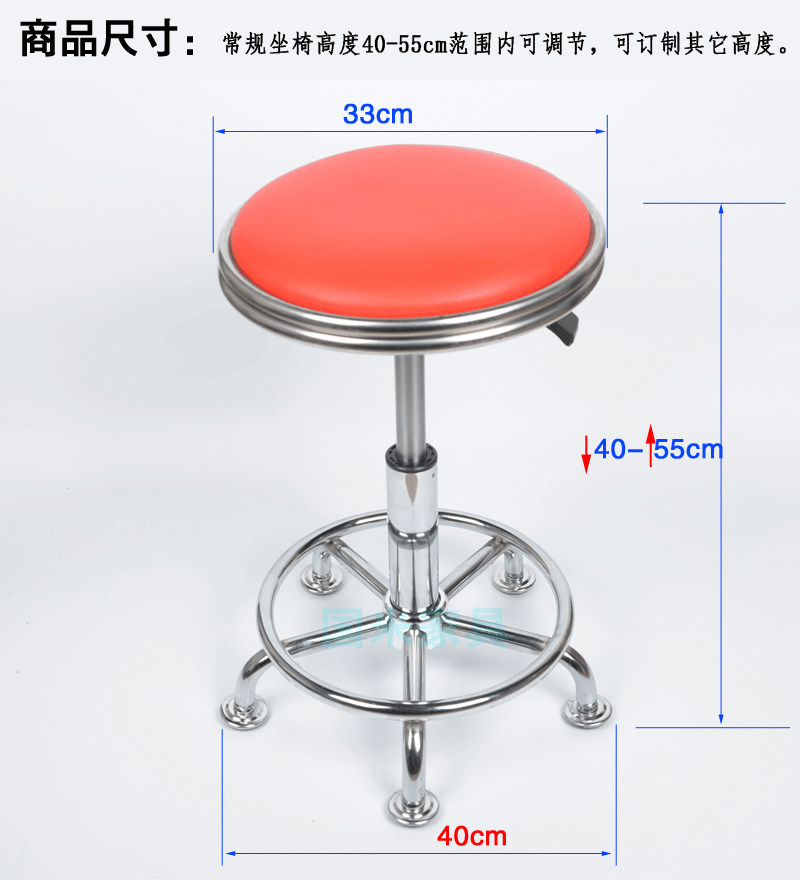 Stainless steel lift swivel chair workbench staff seat small round stool bar chair soft leather cloth rotation height customization