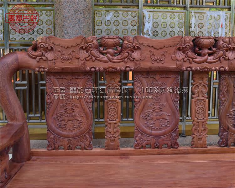 Myanmar Flowers Pear Fighting Country Elephant Sofa Big Fruits Purple Sandalwood Guest Hall Furniture Full Handmade Engraving 13 Centimeters