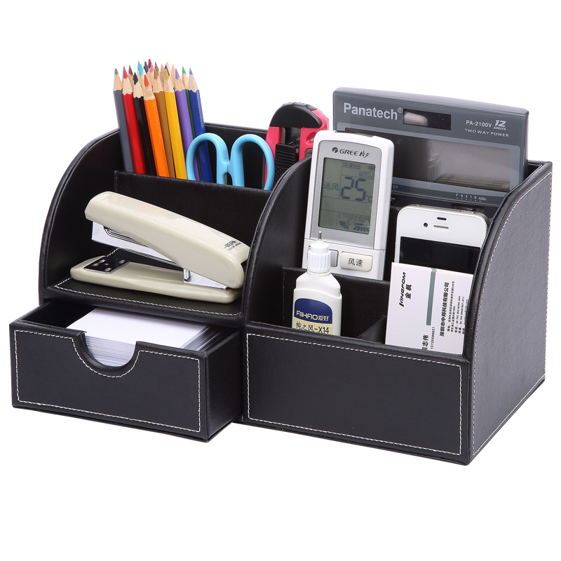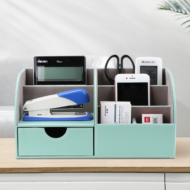Office multi-function leather pen creative drawer style style study desktop collection box students Nordic upscale