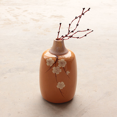 Japanese ice cracked glaze tea color plum blossom bottle ceramic vase countertop home decoration ornaments atmospheric hot sale