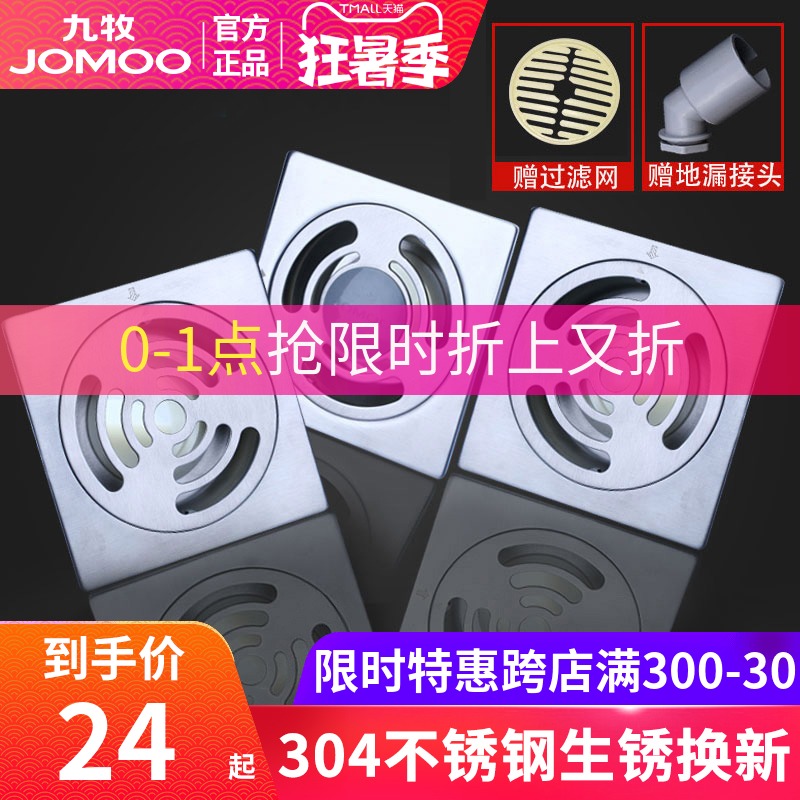 Jiu Mu Di leakage deodorant stainless steel floor drain 304 thickened deodorant core Powder room washing machine bathroom floor drain deodorant