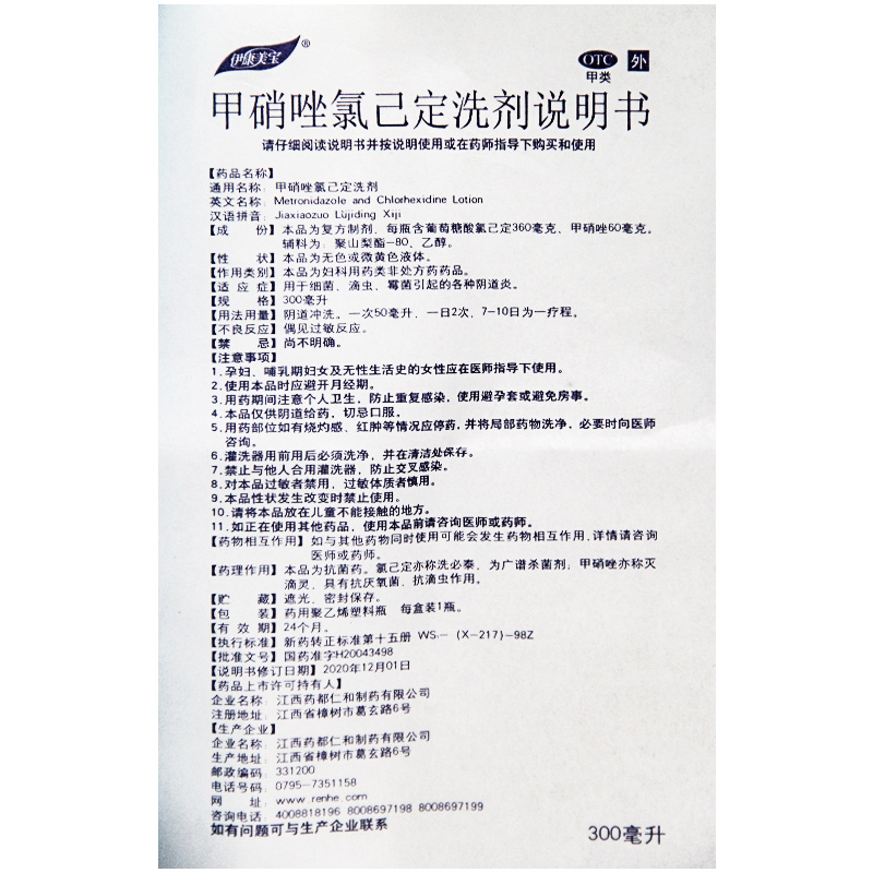 Renhe metronidazole chlorhexidine lotion 300 ml fungal vaginitis gynecological inflammation lotion trichomoniasis vulva
