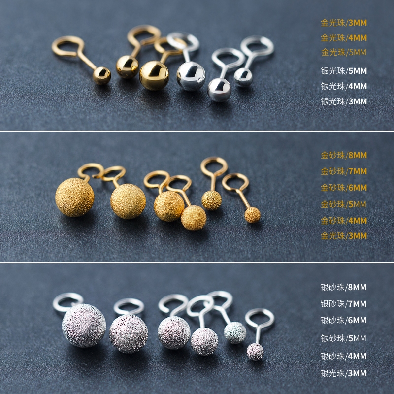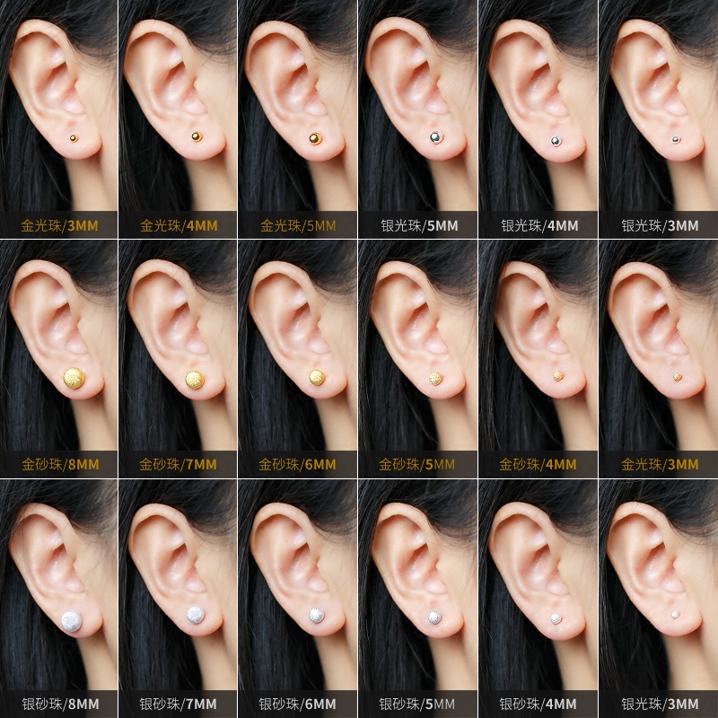 S925 gold sandpearl 8mm pair S925 gold light pearl 3mm pair S925 silver light pearl 5mm pair S925 silver sand pearl 6mm pair S925 gold light pearl 4