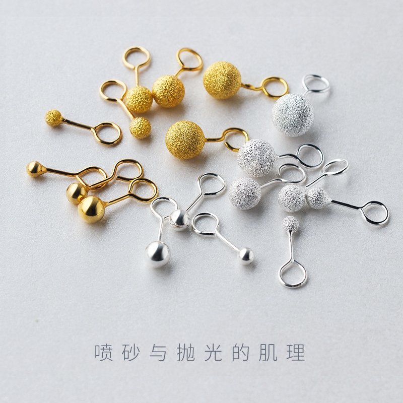 Love Loach s925 silver frosted small ear needle plated gold personality round bead Ball ear buckle bending hook male lady ear ornaments