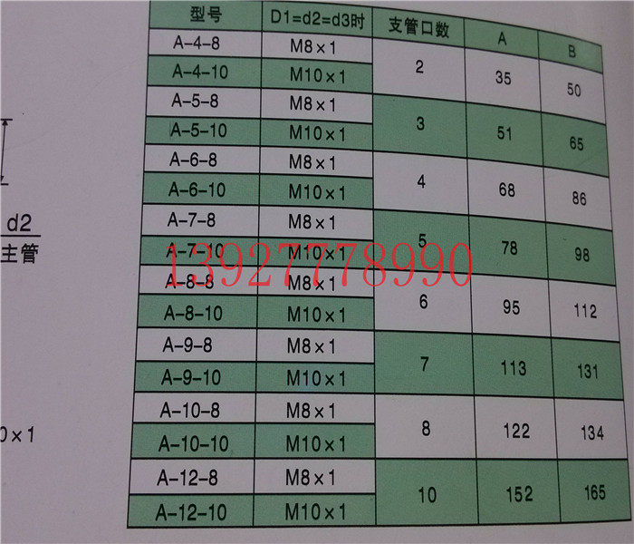 A-4-8-10 (2 oil outlets) A-5-8-10 (3 oil outlets) A-6-8-10 (4 oil outlets) A-7-8-10 ( 5 oil outlets)