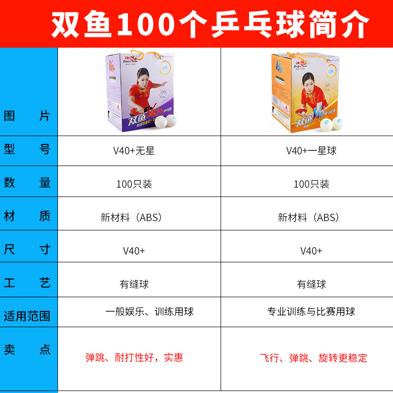 Double fish table tennis One Star 40 New material No Stars Ping-Pong serve with children training ping-pong balls 100 clothes