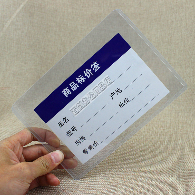 Commodity price tag leather 180x120mm price paper display card pop plastic sleeve label paper protective film