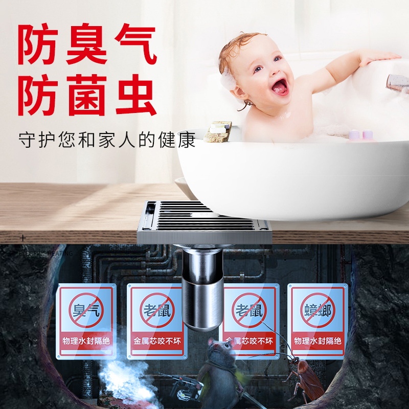 Six Defense Floor Drain Patented Full Copper Shower Room Large Displacement Bathroom Washing Machine Toilet Deodorant Floor Drain Core Sewer-Taobao