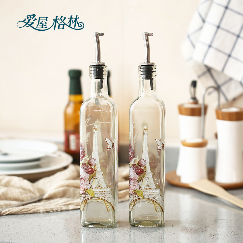 Love Househouse Green Creative Kitchen Products Glass Oil kettle flavor anti-drop large capacity household vinegar bottle