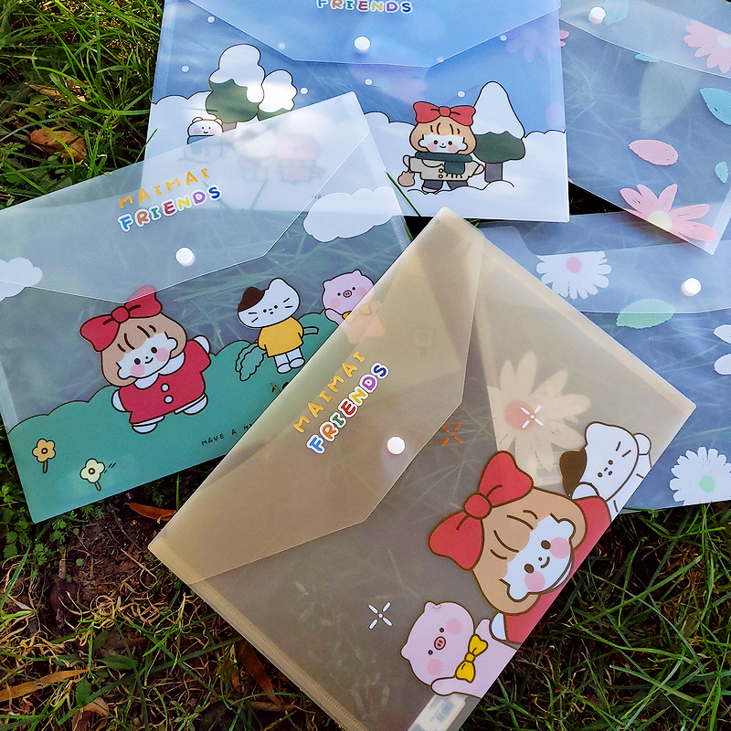 Cute cartoon transparent button file bag a4 elementary school students operating discipline bag bag small fresh