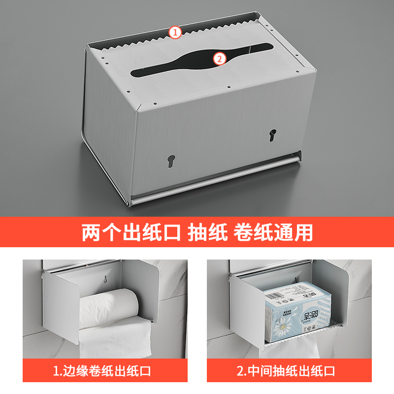 Powder room toilet paper box toilet paper box shelf Space aluminum wall-mounted waterproof toilet tissue box Free hole type