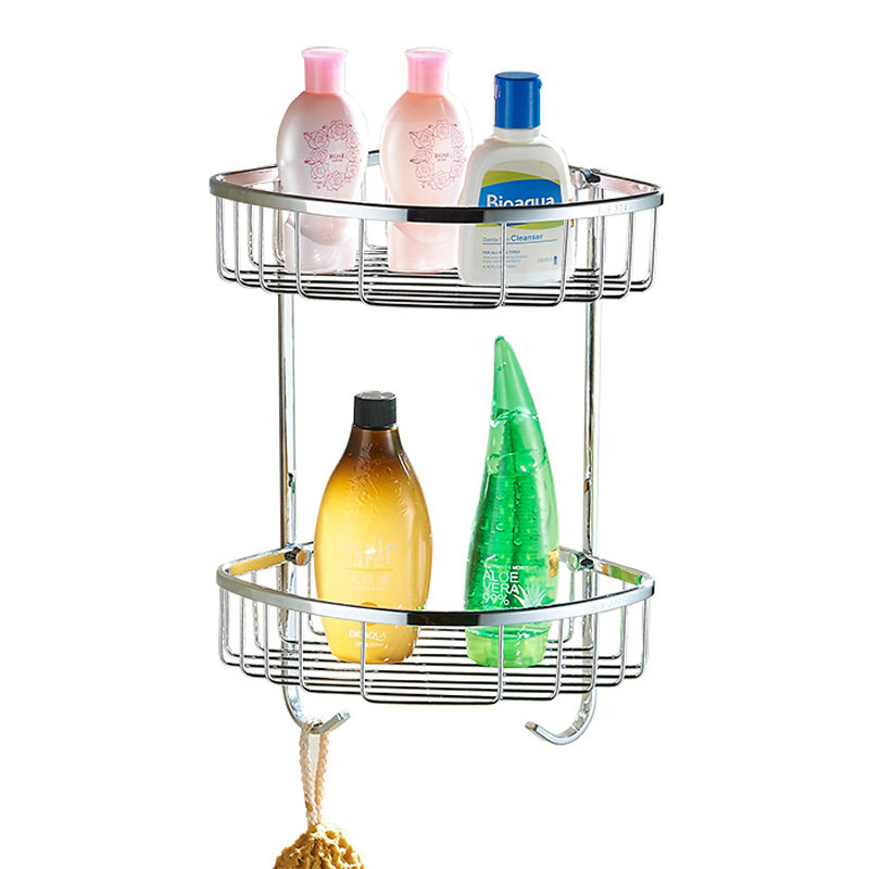 304 stainless steel triangle basket 2-layer double-layer bathroom corner basket storage basket Powder room corner rack toilet mesh basket storage rack