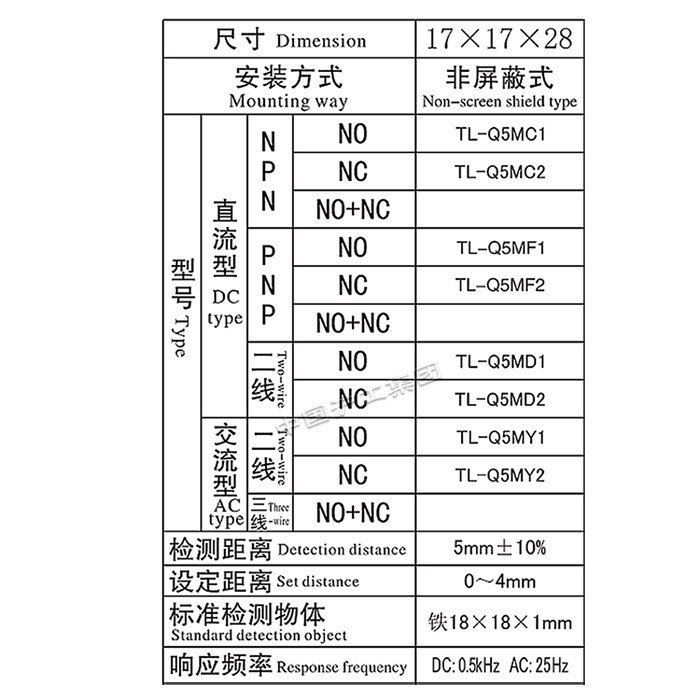 Shanghai working group TL-Q5MF2 DC DC24V3 line PNP normal close square proximity switch sensor