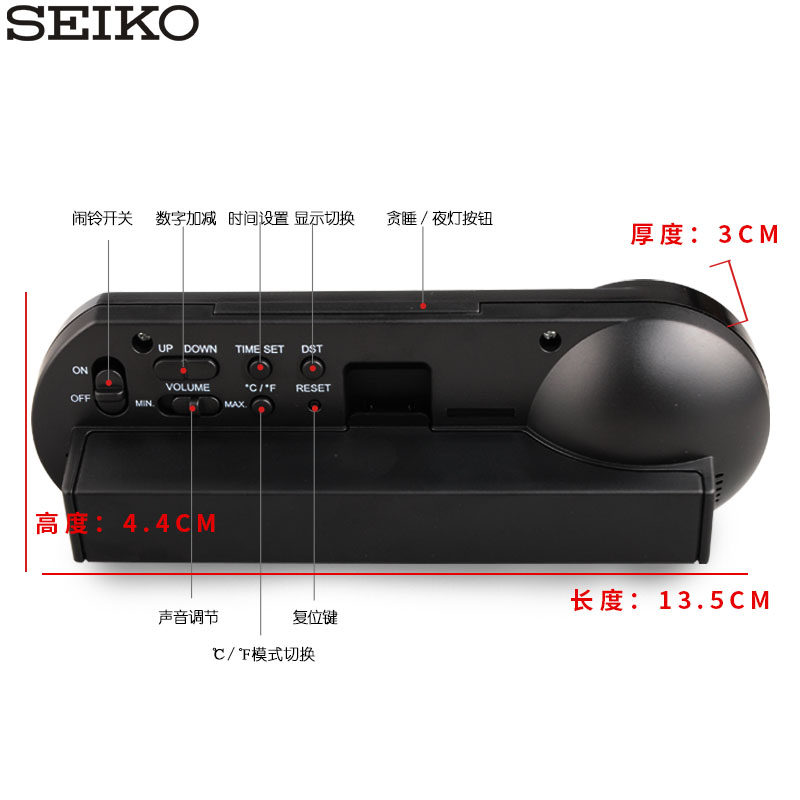 seiko Adjustable volume alarm clock snooze night light Electronic mute Fashion student creative alarm clock