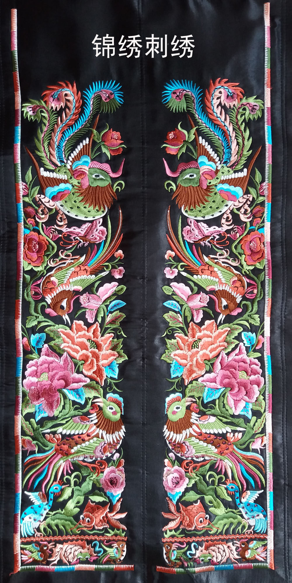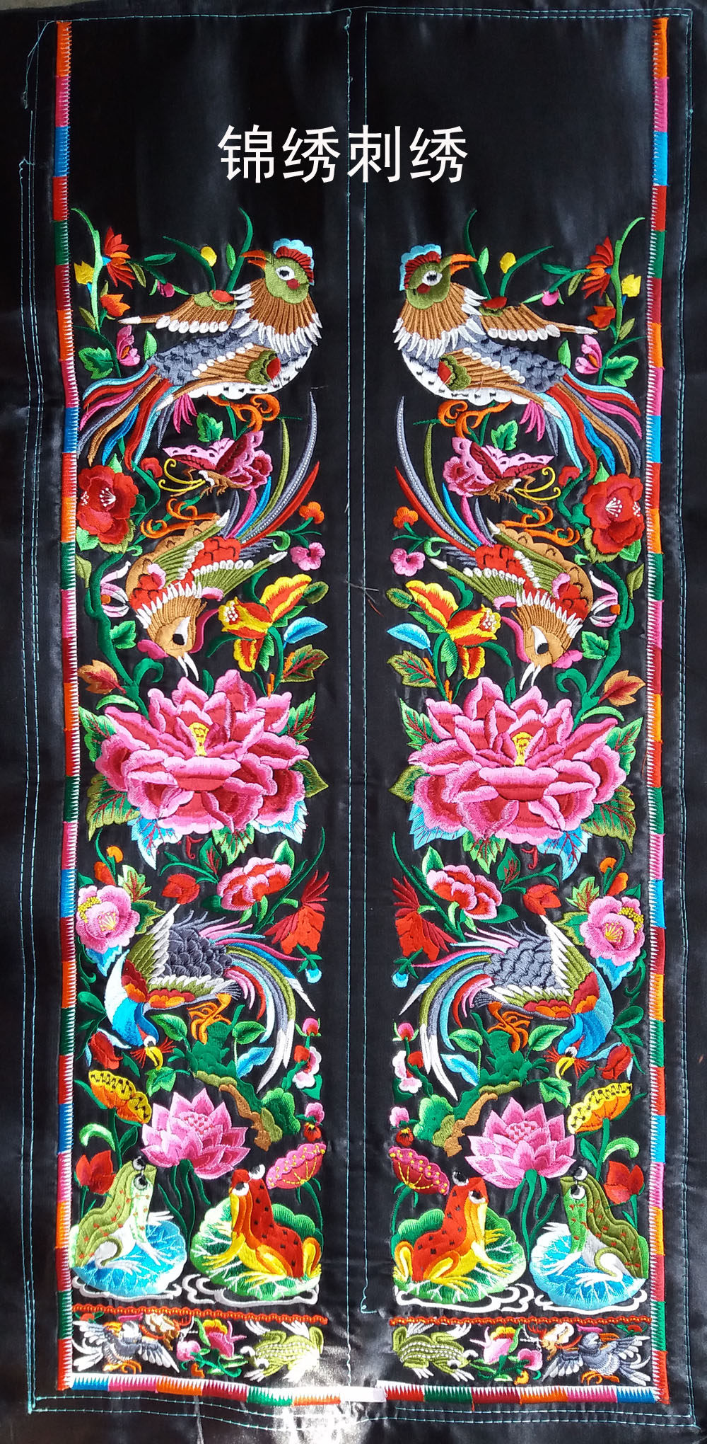 Minority machine embroidery special embroidery piece Miao craft gift decoration embroidery couplet embroidery piece pair price 15*72CM