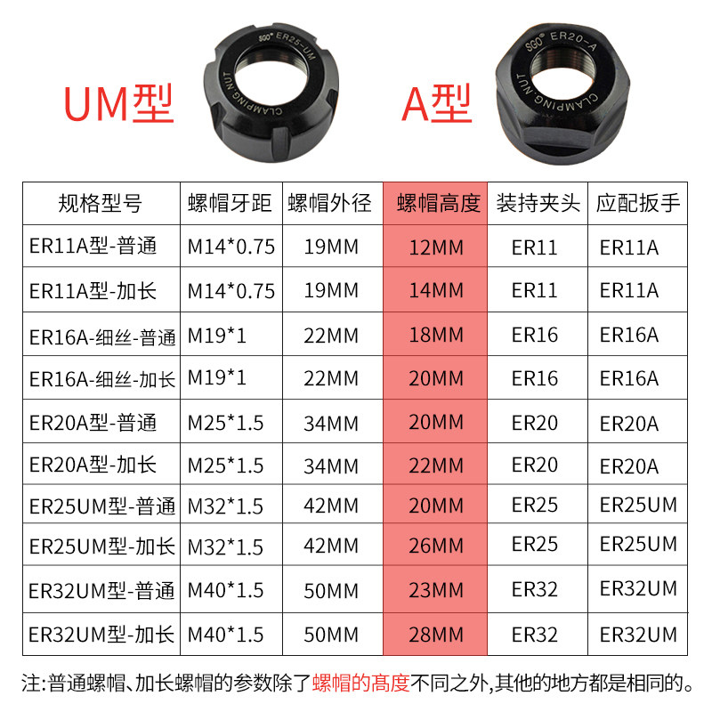 Dynamic balancing ER11A screw cap high 14mm dynamic balancing ER16 filament height 20mm dynamic balancing ER20A screw cap coarse wire height 22mm dynamic balancing ER25UM screw cap