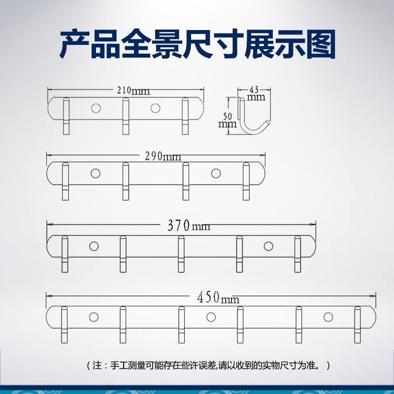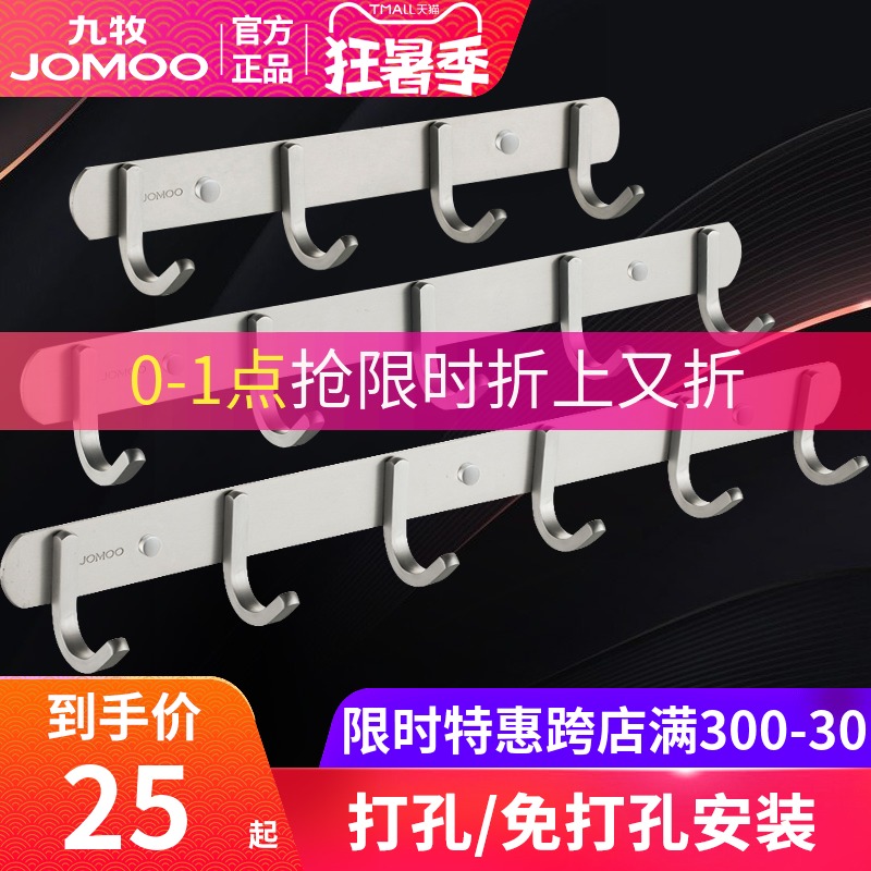 Jiumu bathroom hanging hook row hook thickened bathroom wall hanging towel clothes hanger Powder room space aluminum hook