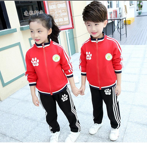 Kindergarten uniforms spring, autumn and winter red color matching school uniforms custom children's clothing sports neutral long-sleeved group performance
