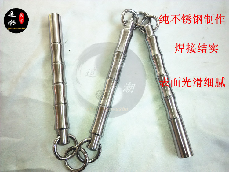 Martial arts instruments pure stainless steel three-section sleeves whip three-section whip Cool stick woman anti-camera riot not open edge