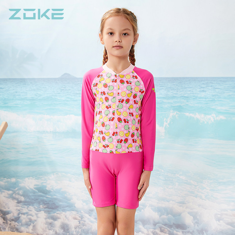 Zhouke children's swimsuit girls summer long-sleeved sun protection 2024 new hot spring medium-sized children one-piece girls swimsuits