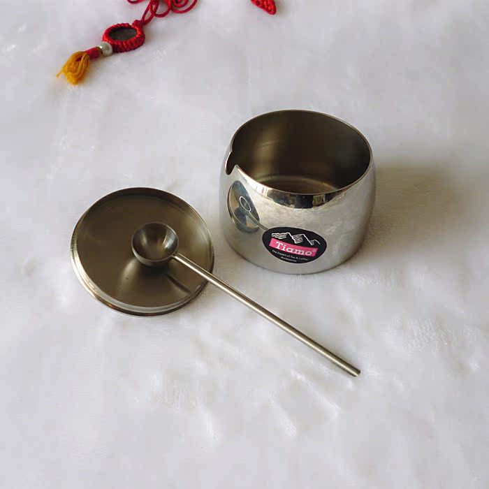 TIAMO original exquisite mirror stainless steel coffee sugar tank sugar tank kitchen seasoning tank seasoning tank to send a small spoon