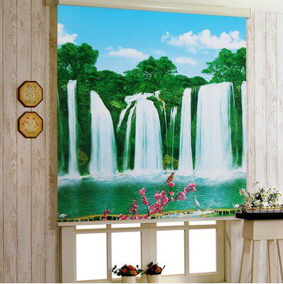 Customized minimal modern punch-free printing drawing shade curtain roll curtain hand lift and drop kitchen toilet waterproof