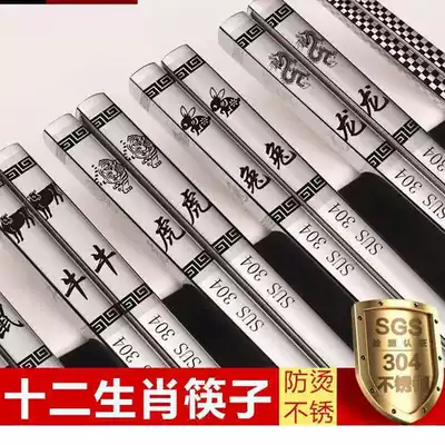 304 stainless steel non-slip twelve Zodiac zodiac chopsticks Zodiac Zodiac spoon rice spoon square household chopsticks 1 pair
