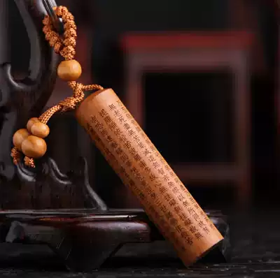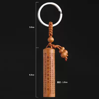 Natural peach wood heart Sutra keychain Car keychain pendant height 6 3 cm