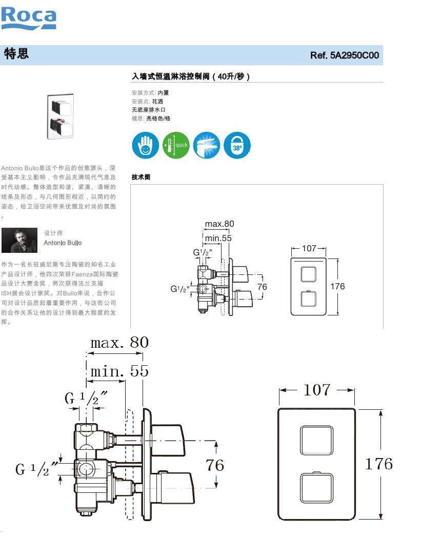 Roca Loka Moai wall-mounted thermostatic bathtub shower control valve (40 liters per second) 5A2846C00