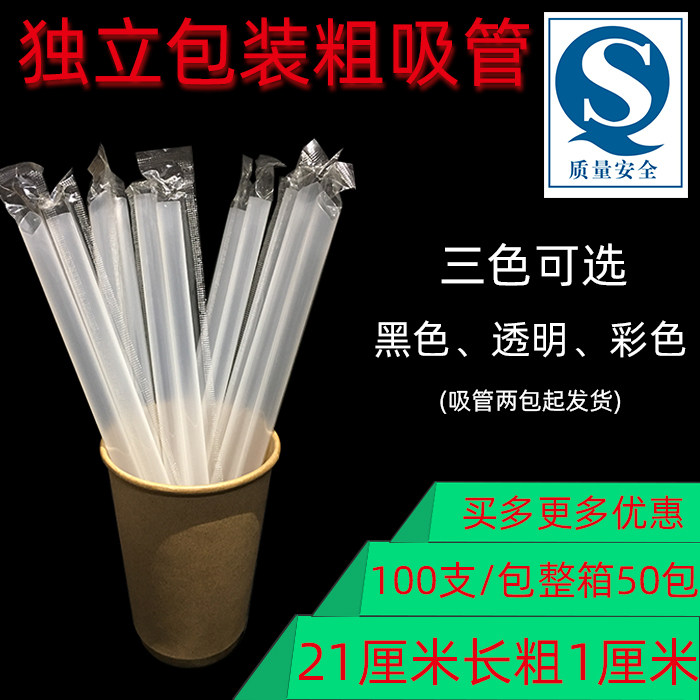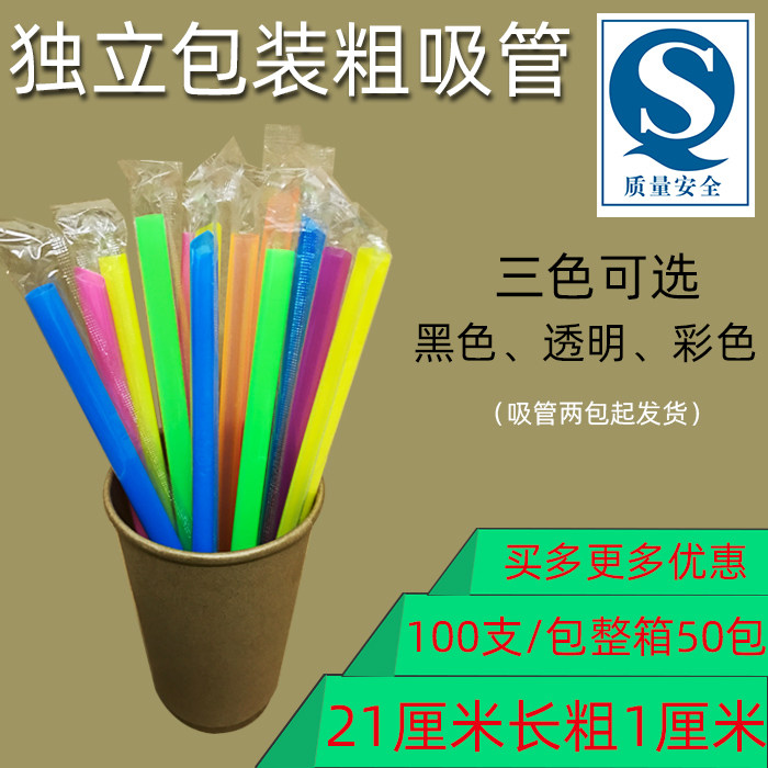 Pearl milk tea disposable plastic large straw beverage black coarse straw independent single package 100 hard