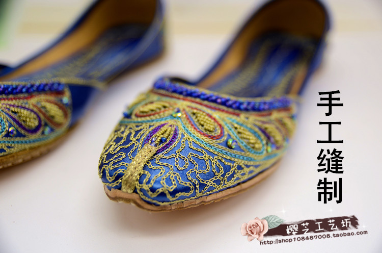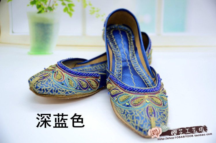 Pakistan Boutique String Beads Embroidered Shoes Sub Handmade Cow Leather Women Shoes National Shoes Characteristics Indian Dance Knot Shoes Wedding