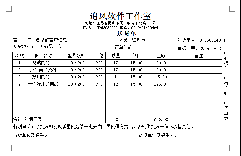 Genuine wind and cloud order management system outbound shipment order sales order printing software extranet off-site version