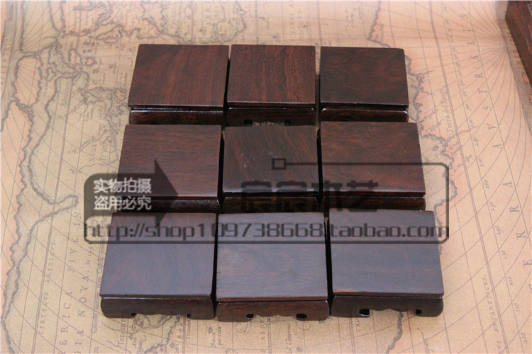 Mahogany crafts ornaments base Qishi jade bottom tray Wood carving ornaments Solid wood square seat