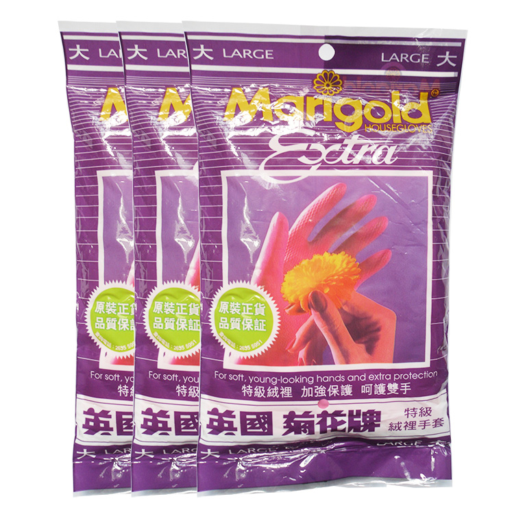 British imported Chrysanthemum brand super durable rubber home housework velvet latex gloves a pair of large, medium and small yards