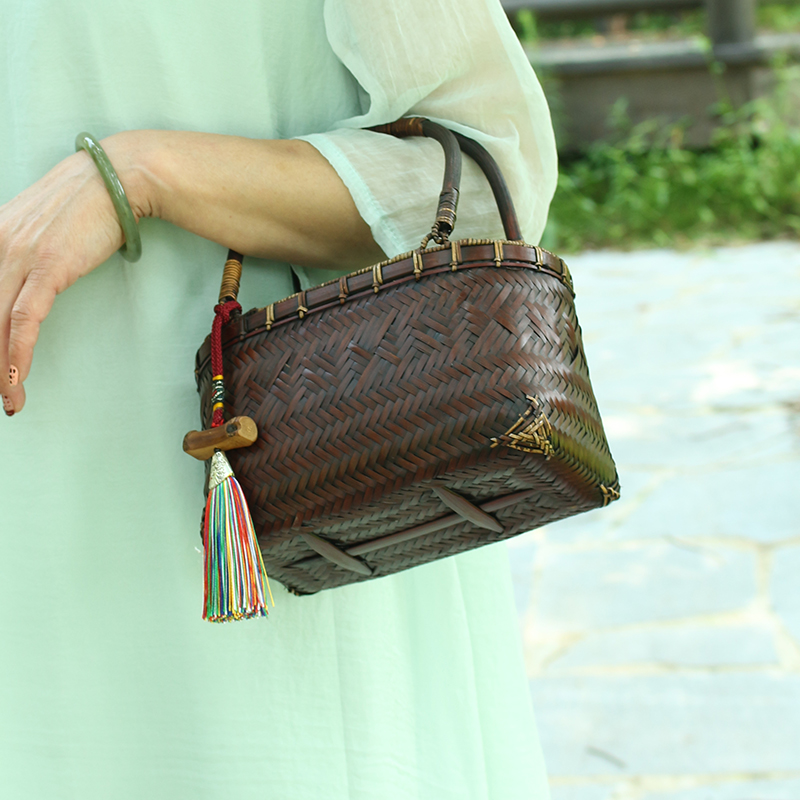 Seiko Small Bamboo Handbag Tea Bag Bamboo Basket Zen Retro Craft Tea Ceremony Storage Bag Free Pendant