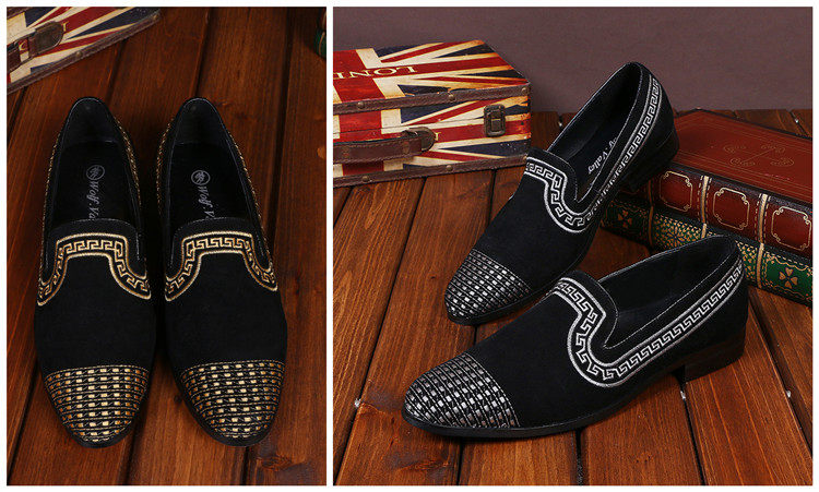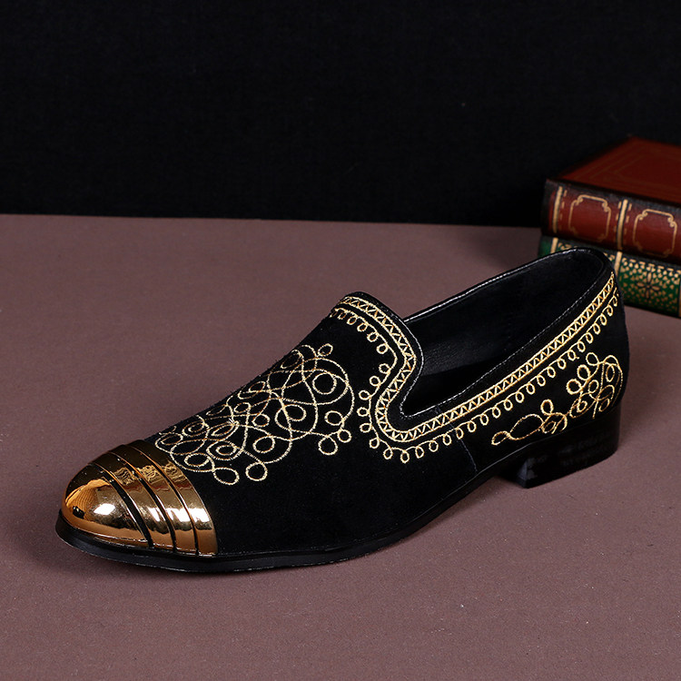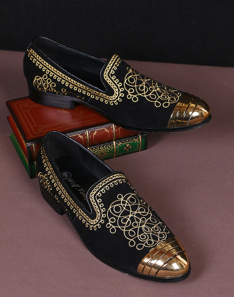 Golden embroidered gold shoe head black black blue