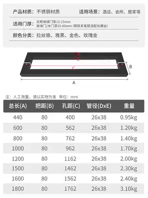 KOB thick stainless steel black glass door handle square tube solid wood door door door with frame frameless door handle pair