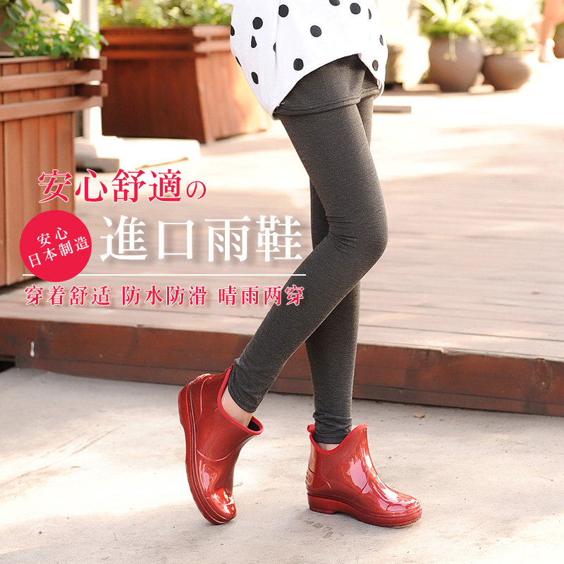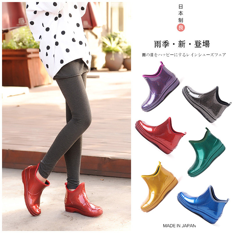 Japanese rain shoes women short tube good Japanese rain boots warm plus velvet water shoes low water boots non-slip rubber shoes women