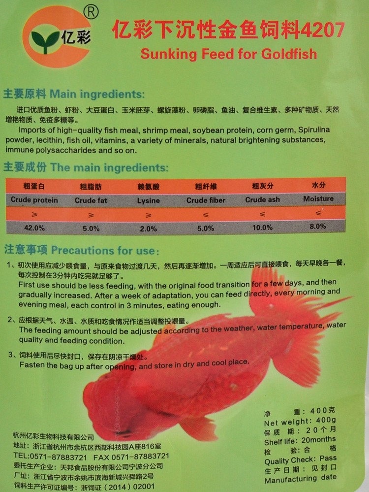 Yicai goldfish feed 4207 Yicai fish food natural color fish food Sink type 1 8mm