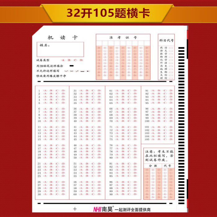 105 questions Horizontal selection Nanhao exam (reader)Reading machine Answer card Machine reading card 10,000 special price