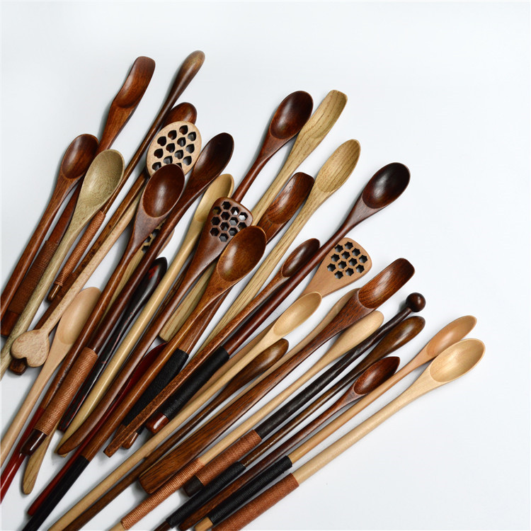 Wooden spoon Slender handle stirring coffee spoon Export boutique winding non-slip ultra-long handle a variety of wooden spoons
