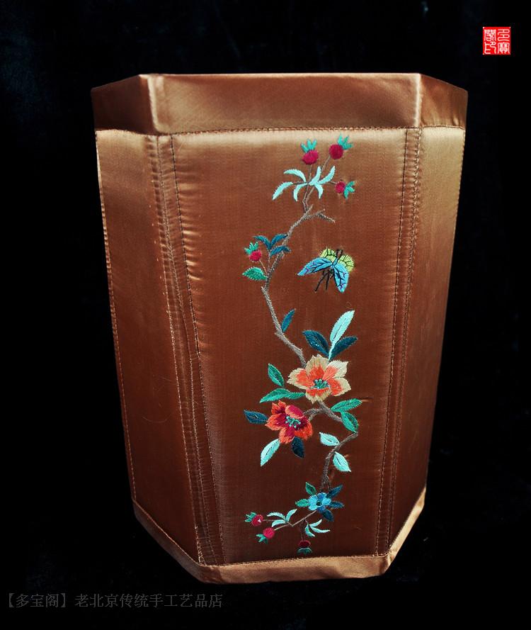 Hand embroidery Old embroidery pieces Non-heritage cultural Revolution Foreign exchange Beijing embroidery Hand embroidery Home decoration Butterfly love flower hexagonal bucket