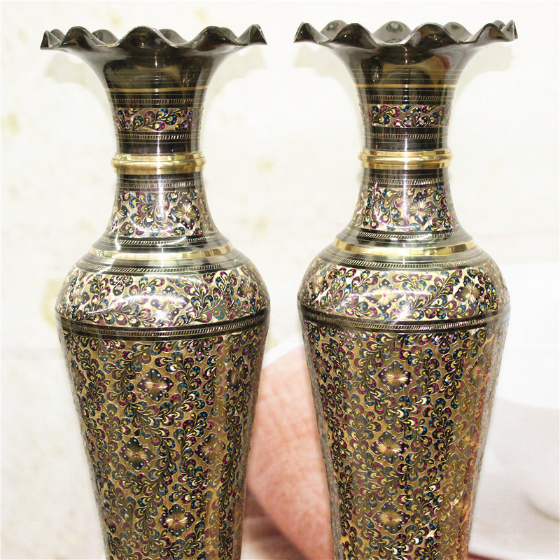 Pakistan Handicraft Direct Sale Copper Bronze Sculpture 24-inch Postomas Day Vase Home Decoration BT540