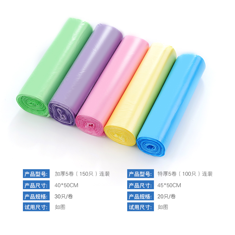 5 rolls of colorful thickened garbage bags for household affordable large size point-break black kitchen dormitory plastic bag small size